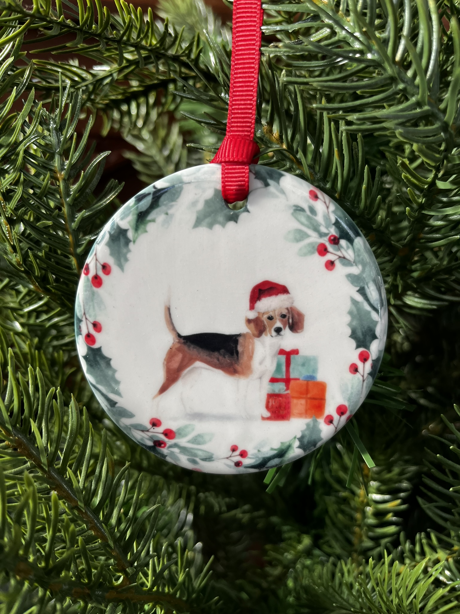 Add a touch of festive charm to your holiday decor with this beautiful ceramic hanging decoration. Featuring a delicate watercolour image of a Beagle wearing a classic Christmas hat, this ornament is both elegant and heart-warming. Crafted from ceramic and finished to a high standard, it makes a delightful addition to any Christmas tree, wreath, or festive display. Perfect as a thoughtful gift for dog lovers or as a keepsake to treasure year after year, this decoration brings seasonal joy and character to any home.