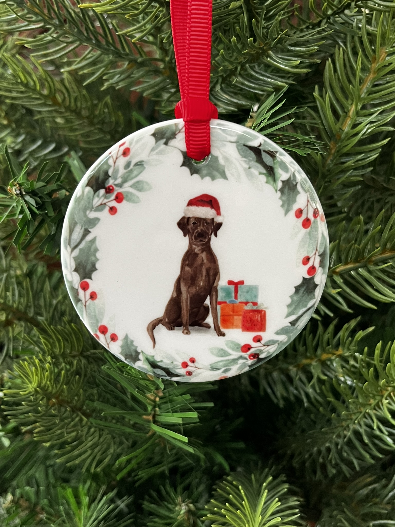 Chocolate Labrador Christmas Hanging Decoration – Ceramic Dog Ornament