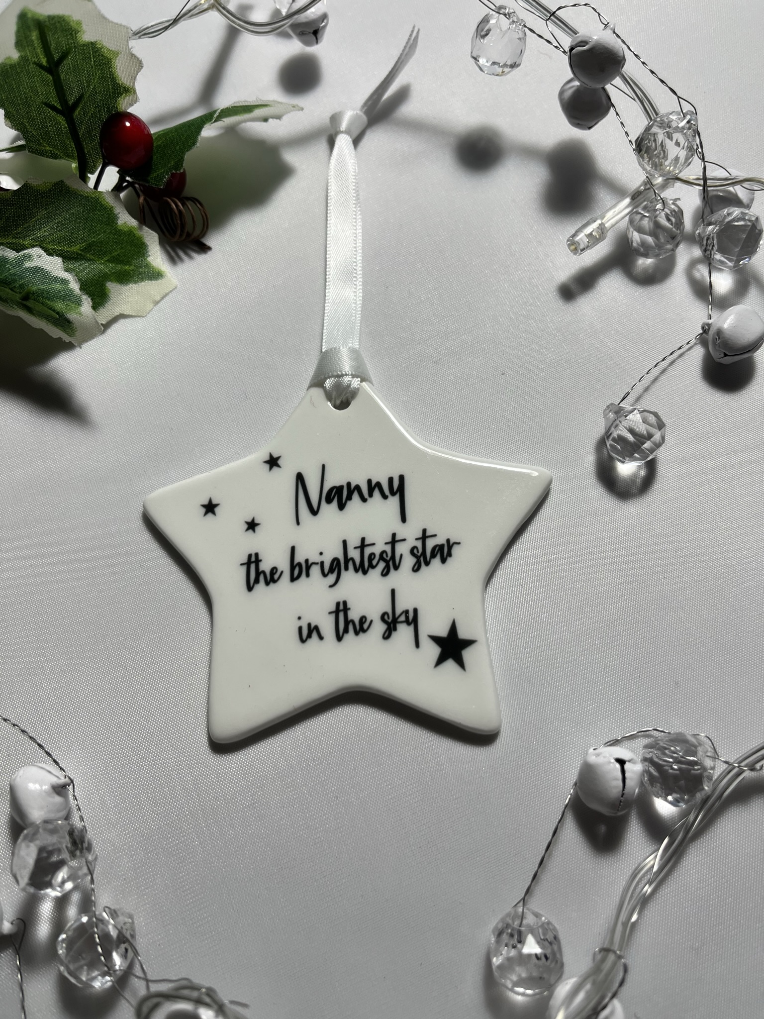 This lovely star shaped ceramic hanging ornament is the perfect keepsake to place on your Christmas tree or to hang in your home and treasure for years to come.